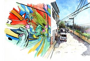 Als ich vor einigen Jahren die Urban Sketchers entdeckte und herausfand, dass die Hauptcommunity zu dieser Zeit die Zeichnungen auf der Bilderplattform flickr teilte, stolperte ich dort immer wieder über grandiose Portraitzeichnungen der Künstlerin Mariah mit dem ominösen