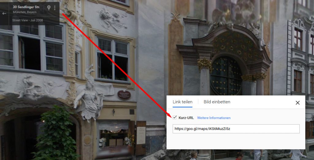 Kurz-URL von Google Streetview (Photospere ist nicht zulässig)